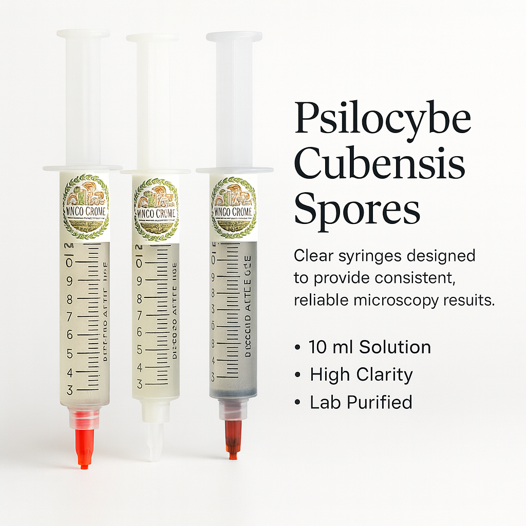 Purchase premium-quality 10 ml Psilocybe cubensis spore syringes, prepared specifically for microscopy, educational, and research purposes. Each syringe is carefully assembled using clean, lab-grade processes to ensure clarity and consistency for microscopic examination. The solution contains a high concentration of clearly visible, viable spores, making it suitable for detailed observation of spore morphology and structure under a microscope.
